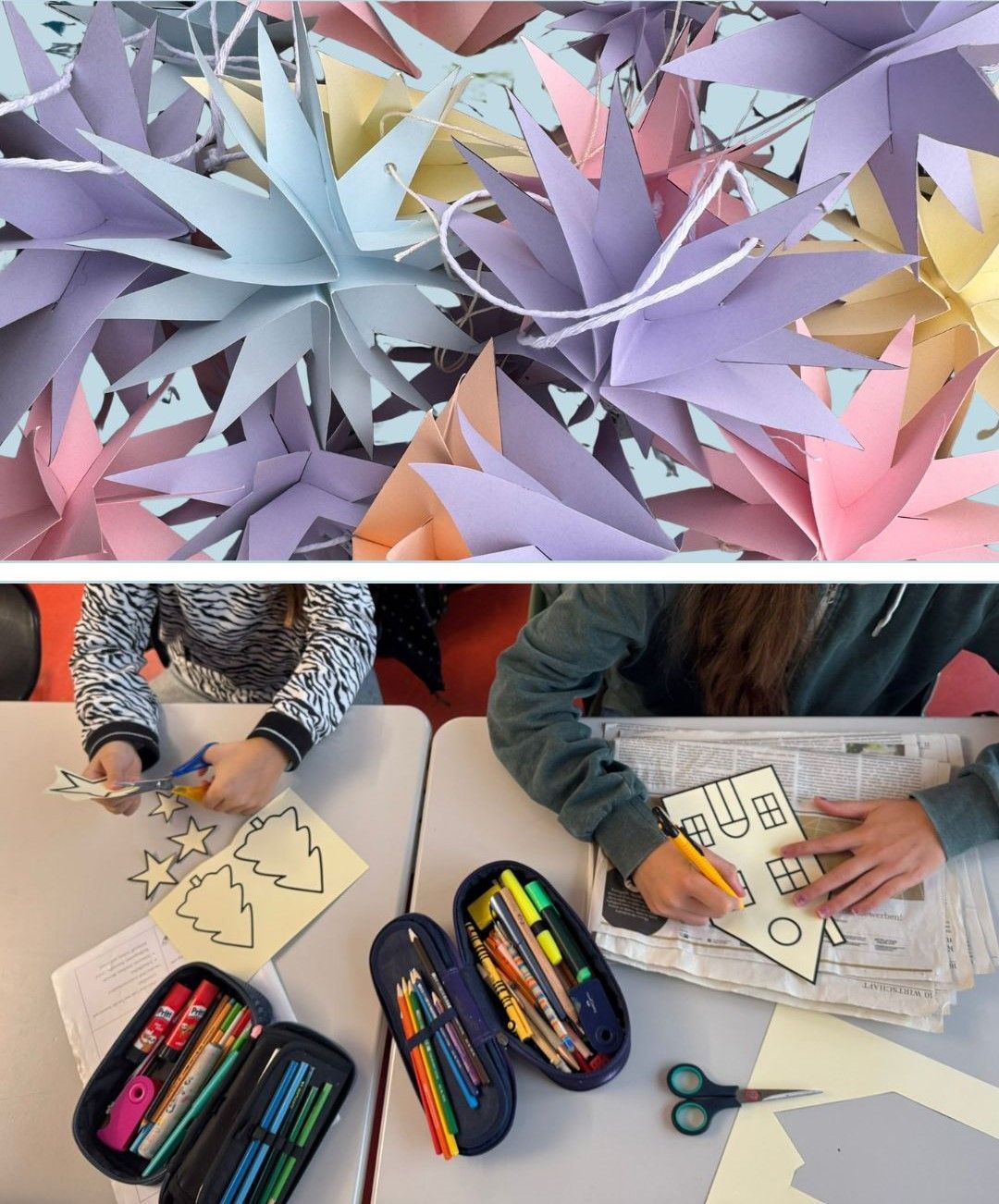 In der Vorweihnachtszeit haben die Schülerinnen und Schüler der Klassen 7b und 5a der Realschule Renningen gemeinsam Fensterbilder und Weihnachtssterne gebastelt.