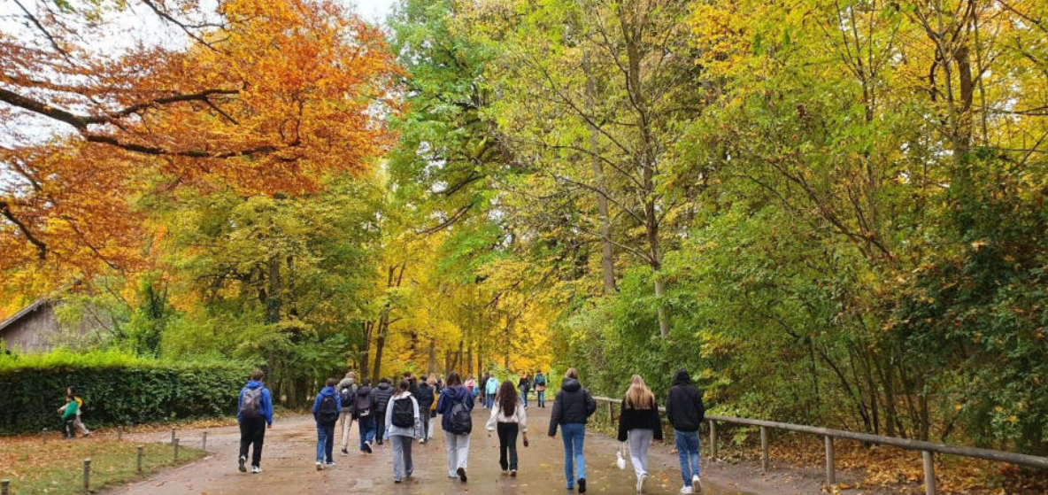 Nach dem Stadium fuhren wir zum Chinesischen Turm im Englischen Garten und spazierten durch den bunten Herbstwald bis zum Marienplatz, wo wir etwas Freizeit hatten. Den Abend ließen wir dann